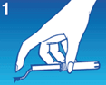 Tout en maintenant toujours l’applicateur, utilisez l’index de la même main pour pousser le petit tube intérieur complètement dans le grand tube extérieur. Cela fait glisser le tampon hors de l’applicateur et le met ainsi en place dans le vagin.