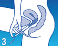 Le vagin est incliné vers le haut et l’arrière. Donc, glissez doucement l’applicateur en direction du haut et de l’arrière. Cela peut aider de faire un peu tourner ou osciller l’applicateur.
